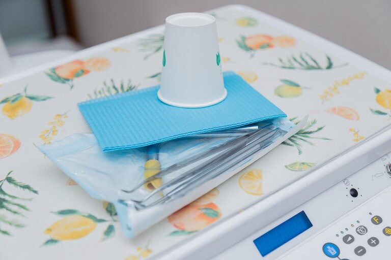 滅菌、消毒完了後は密封パックに保存し、使用する直前で開封しています。